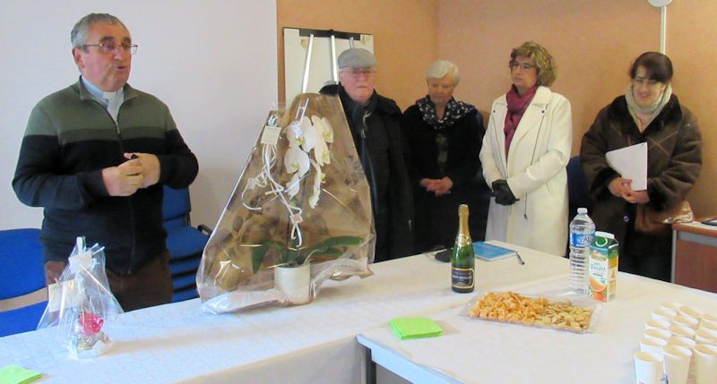 Au nom des paroisses, le père Christian le Meur, notre curé, a prononcé les mots de remerciements, avant que Chantal reçoive le double présent d’une belle composition florale et d’une enveloppe contenant les dons personnels.