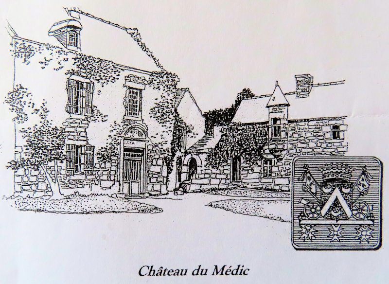 Manoir du Médic et armoiries des Cormier du Médic (dessin de Jean Le Bars)