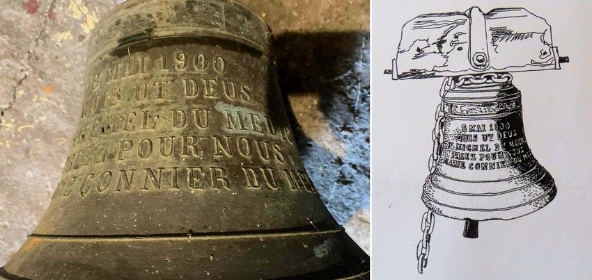 Sur la cloche on lit la date : 8 mai 1900, et la devise latine : « Quis ut Deus » Le sens de cette expression latine est « Qui [est] comme Dieu » C’est la traduction du nom « Michel ». Cette formule se retrouve dans différents passages de la Bible, notamment dans le Livre de Daniel, et, pour le Nouveau Testament, dans le Livre de l’Apocalypse. C’est là que l’archange Michel, chef des milices célestes, combat victorieusement le Dragon et ses anges déchus (l’esprit du Mal). Posée sous forme de question, la formule latine sonne comme un défi aux mauvais anges qui se croient les égaux du Créateur.