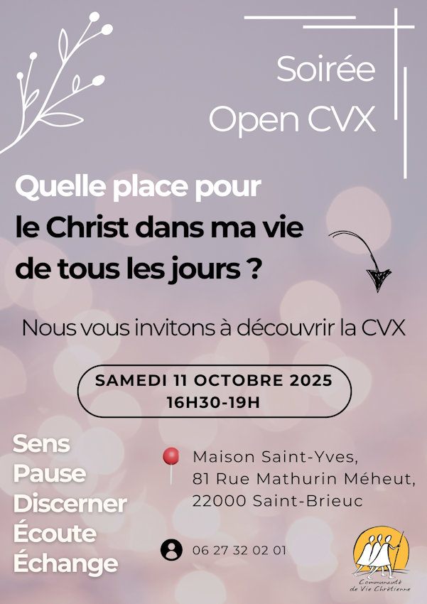 Une Open CVX à St Brieuc le samedi 11 octobre de 16h à 19h à la maison Saint-Yves