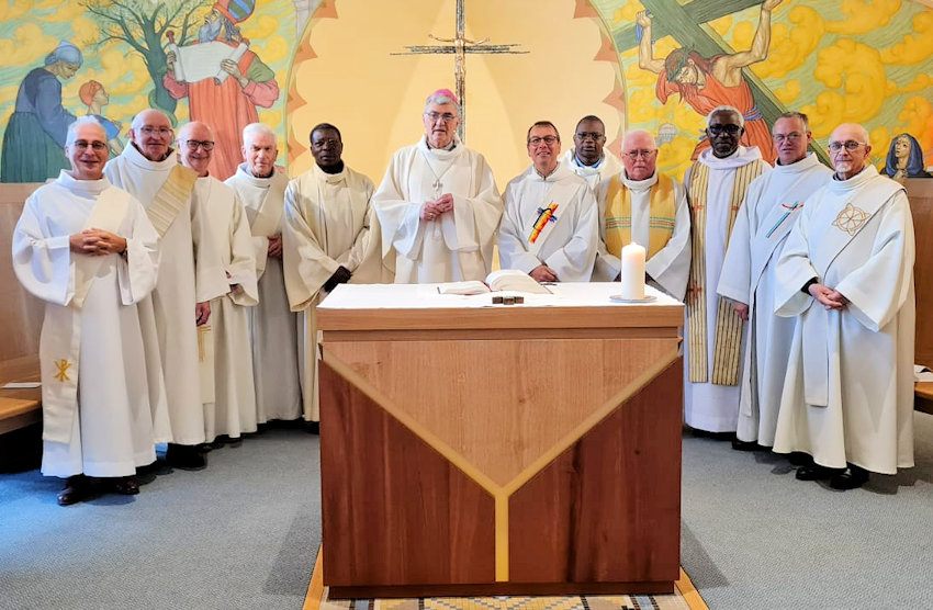 Évêque, prêtres et diacres à l’issue de la messe