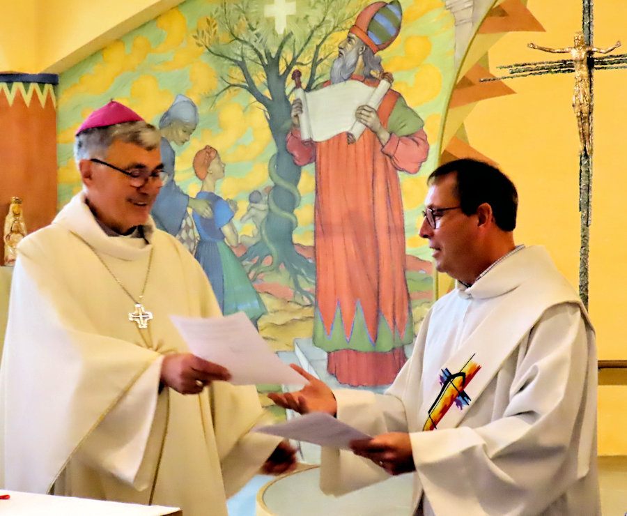 Pascal Delecour, diacre, reçoit sa lettre de mission des mains de Mgr Denis Moutel