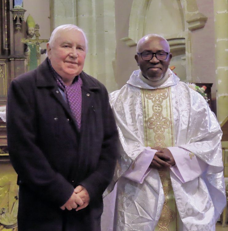 « Bonjour à tous. Nous sommes heureux d’accueillir aujourd’hui le Père André Kowou, qui préside cette célébration, ainsi que Monsieur le Maire Gilbert Burlot et les élus présents. Je salue aussi chacun de vous, paroissiens et amis, venus partager cette action de grâce. Merci pour votre présence.