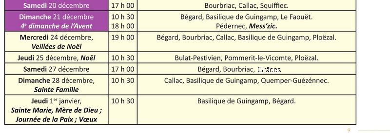 Bien noter ce changement de programmation : Messe du samedi 27 décembre à Grâces et non à Ploumagoar
