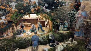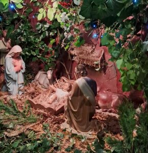 Près de la crèche de la Basilique à Guingamp, nous pouvons lire cette phrase qui nous rappelle le sens de Noël : « Car Dieu a tellement aimé le monde qu’Il a donné son Fils unique, afin que quiconque croit en Lui ne se perde pas, mais qu’il obtienne la vie éternelle. » Evangile selon St Jean, chapitre 3, verset 16.