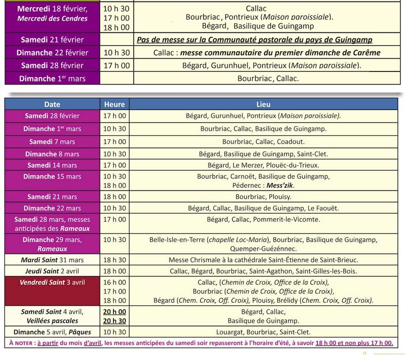 Carême et Semaine Sainte 2026 dans la Communauté Pastorale du Pays de Guingamp : messes et officesPublié le 16 février 2026 |